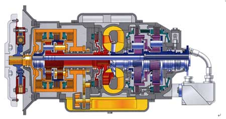 迪瓦,在Ⅰ檔,發(fā)動機動力輸入后,經(jīng)行星齒輪差動機構(gòu)把動力分流成兩路:一路液力傳輸,一路機械傳輸。液力傳輸和機械傳輸?shù)姆峙浔壤Q于車輛的阻力,阻力大時液力傳輸?shù)谋壤黾,阻力小時機械傳輸?shù)谋壤黾,這樣一來,就同時利用了液力傳輸增大扭矩的優(yōu)點和機械傳輸效率高的優(yōu)點。迪瓦(DIWA)驅(qū)動范圍相當于其它自動變速器的Ⅰ檔和Ⅱ檔二個檔位,因此,換檔次數(shù)少50%,減少了換檔摩擦片的磨損,運行更平穩(wěn),大修期更長。而且它在Ⅰ檔驅(qū)動范圍內(nèi)是無級傳動的,舒適性好。