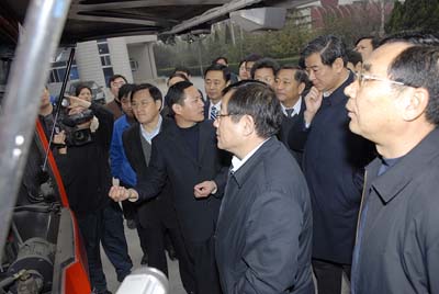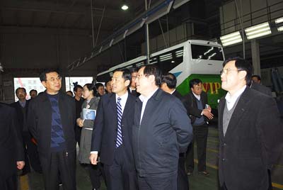 2007年11月12日下午,科技部萬(wàn)鋼部長(zhǎng)、黨組成員、科技日?qǐng)?bào)社社長(zhǎng)張景安在山東省委常委、副省長(zhǎng)王軍民、聊城市委書記宋遠(yuǎn)方、市長(zhǎng)林峰海等同志陪同下視察了中通客車。中通客車董事長(zhǎng)王慶福、總經(jīng)理李海平、常務(wù)副總經(jīng)理時(shí)洪功及中通電動(dòng)客車項(xiàng)目負(fù)責(zé)人王欽普向萬(wàn)部長(zhǎng)和山東省領(lǐng)導(dǎo)匯報(bào)了企業(yè)技術(shù)創(chuàng)新、生產(chǎn)經(jīng)營(yíng)、客車出口及承擔(dān)國(guó)家“863”計(jì)劃重大項(xiàng)目“混合動(dòng)力客車整車研發(fā)”和“奧運(yùn)用純電動(dòng)客車整車研發(fā)”等方面的情況。