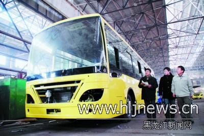 上圖為生產(chǎn)車間里,工人們正在為哈市聯(lián)運(yùn)67路定做的43臺(tái)新車的訂單忙碌著。