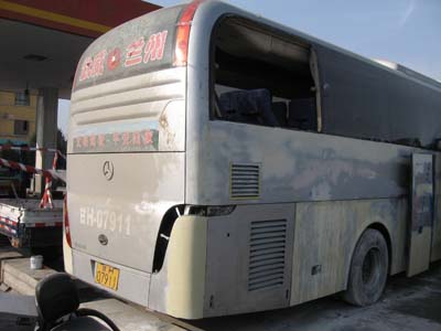 11月,正是寒風(fēng)漸起、思鄉(xiāng)情切的日子。在甘肅的高速公路上,一臺(tái)亞星JS6128HD1十二米大客車載著一車的乘客踏上了旅程。然而行駛中因?yàn)楸茏屲囕v發(fā)生了翻車,眼看一場(chǎng)慘劇將要上演,然而最后的結(jié)果是卻出人意料、讓人欣喜:只有三人輕傷,到醫(yī)院檢查后當(dāng)晚全部回家。而車子呢,骨架輕微變形,乘客門處玻璃碎了,前風(fēng)窗玻璃還是乘客為了逃生而用安全錘敲碎的,車子吊過來后又開回修理廠了。