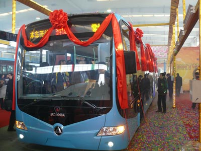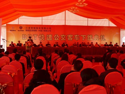 【中國客車信息網(wǎng)現(xiàn)場報道】由江蘇常隆客車與瑞典斯堪尼亞公司聯(lián)合開發(fā)的18米BRT快速公交車YS6180G于12月19日在江陰下線。