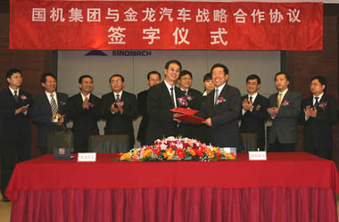 4月13日下午,中國(guó)機(jī)械工業(yè)集團(tuán)公司(國(guó)機(jī)集團(tuán))與廈門(mén)金龍汽車(chē)集團(tuán)股份有限公司(金龍汽車(chē))戰(zhàn)略合作框架協(xié)議簽字儀式在國(guó)機(jī)集團(tuán)大廈舉行。國(guó)機(jī)集團(tuán)總裁任洪斌、金龍汽車(chē)總經(jīng)理孫建華代表雙方在協(xié)議上簽字。根據(jù)雙方簽署的協(xié)議, 國(guó)機(jī)集團(tuán)和金龍汽車(chē)將本著“優(yōu)勢(shì)互補(bǔ)拓市場(chǎng),強(qiáng)強(qiáng)聯(lián)合樹(shù)品牌”的原則,充分發(fā)揮各自在汽車(chē)領(lǐng)域的市場(chǎng)資源和產(chǎn)品優(yōu)勢(shì),共同組織金龍汽車(chē)客車(chē)類(lèi)產(chǎn)品的海外市場(chǎng)開(kāi)拓、產(chǎn)品營(yíng)銷(xiāo)和售后服務(wù)活動(dòng),努力開(kāi)拓金龍汽車(chē)的海外市場(chǎng),為民族汽車(chē)工業(yè)的發(fā)展貢獻(xiàn)力量。