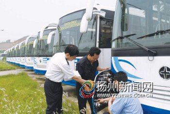日前,由亞星—奔馳有限公司生產(chǎn)的25輛旅游車經(jīng)檢驗(yàn)合格后順利發(fā)往非洲的安哥拉。這是該公司成立以來接到的一份最大訂單。圖為市檢驗(yàn)檢疫人員對(duì)出口車輛進(jìn)行檢測(cè)。