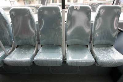 要說(shuō)奧運(yùn)公交車最大的變化就屬座椅了。奧運(yùn)公交車上的座椅全是按照航空座椅的標(biāo)準(zhǔn)設(shè)計(jì)的,表面是絨布的,坐上去軟軟的。在座位右側(cè)有一個(gè)按鈕,可以將椅背放倒15度,扶手也可以隨時(shí)收起。