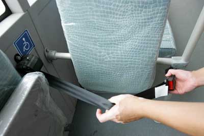 正對(duì)著后門的地區(qū),是放置輪椅的地方,有兩點(diǎn)式安全帶,可以將輪椅進(jìn)行固定。