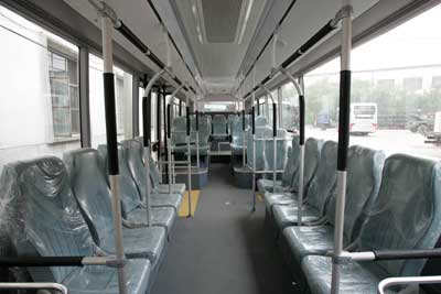 技術(shù)中心王主任告訴記者,“電動(dòng)車的大小,與普通12米公交車完全一樣!背跻(jiàn)傳說(shuō)中的純電動(dòng)奧運(yùn)公交車時(shí),它銀灰色的外衣,流線型的外觀與普通公交車看起來(lái)沒(méi)什么質(zhì)的差別,記者幾乎感覺(jué)有些失望了。但是,當(dāng)記者登上這輛車仔細(xì)觀瞧時(shí),卻發(fā)現(xiàn)里面“別有洞天”。