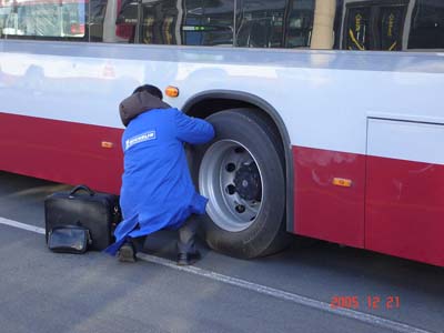 從2005年以來,米其林成立北京公交公司服務(wù)團(tuán)隊(duì),團(tuán)隊(duì)向客戶提供專業(yè)的、全面的服務(wù),其中包括專業(yè)的實(shí)地考察、分析,根據(jù)客戶的實(shí)際需求作出關(guān)于產(chǎn)品及使用的專業(yè)技術(shù)建議。服務(wù)團(tuán)隊(duì)充分了解公交用戶的車輛的運(yùn)行條件,包括車型、路況、輪胎方面等需求,為北京公交公司提供量身定做的服務(wù):如專業(yè)的輪胎檢測、輪胎拆裝與平衡、輪胎刻溝、輪胎翻新等等。無論嚴(yán)冬或者酷暑,服務(wù)團(tuán)隊(duì)的專業(yè)輪胎服務(wù)從不間斷!更為重要的是米其林服務(wù)團(tuán)隊(duì)對(duì)輪胎進(jìn)行實(shí)際行駛檢測后得到的數(shù)據(jù)進(jìn)行分析,向客戶作出專業(yè)建議的同時(shí),令用戶在輪胎行駛過程中得到最佳平均磨耗表現(xiàn),使輪胎發(fā)揮最大使用價(jià)值。
