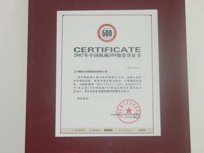 “中國(guó)機(jī)械500強(qiáng)”證書(shū)