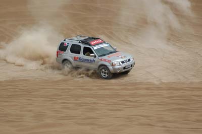 2007年8月15,BFGoodrich(百路馳)輪胎攜手帕拉丁,邀請國內(nèi)外30多名汽車及時尚媒體記者共赴新疆吐魯番鄯善沙漠,體驗(yàn)樂趣無窮的沙漠操控之旅。參與者在三次代表鄭州日產(chǎn)帕拉丁車隊參加達(dá)喀爾拉力賽的職業(yè)車手周勇的帶領(lǐng)下駕駛裝配著百路馳輪胎的帕拉丁SUV 深入沙漠腹地體驗(yàn)了百路馳精心設(shè)計的各項(xiàng)學(xué)習(xí)和體驗(yàn)項(xiàng)目。