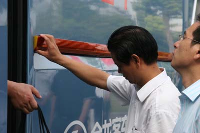 在現(xiàn)場賞車的過程中,參會者驚喜發(fā)現(xiàn),3款樣車的諸多細(xì)微之處都用貼紙清晰地標(biāo)示出來,貼紙上詳細(xì)說明了該項(xiàng)細(xì)微之處的創(chuàng)新設(shè)計(jì)和具體功能,直觀地展示了大金龍產(chǎn)品在細(xì)微之處的創(chuàng)新改善。這一創(chuàng)新的展示手法受到參會者的一致稱贊。
