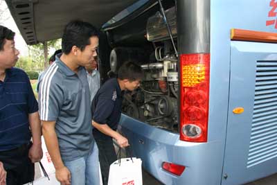客戶觀摩龍威的心臟——日產(chǎn)柴MD9M發(fā)動(dòng)機(jī)