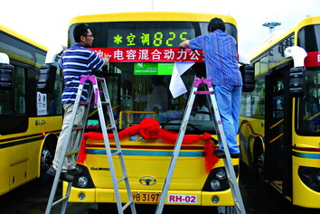 不吃油只用電,沒有廢氣排放沒有污染,每日行駛同樣的長度,但用電的花費僅為公交車輛耗油費用的15%左右。昨天,全國首批電池-電容混合動力公交車正式投入運營。同時,使用新能源的二甲醚公交車也在昨天進行了試營運。
