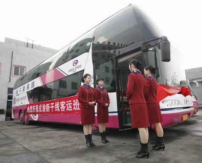 為吸引乘客,打好“翻身仗”,轉(zhuǎn)戰(zhàn)遂渝高速的同時,“成渝新干線”客運聯(lián)盟還特地斥資近3000萬元引進了10輛具有世界先進水平的13.7米德國頂級品牌雙層豪華商務客車投入運營。