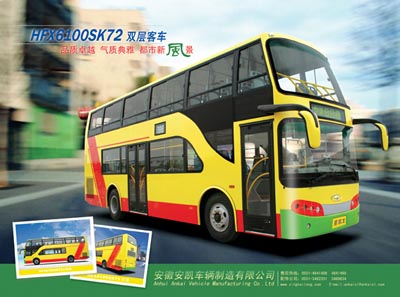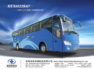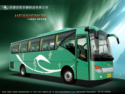 安凱車輛公司經(jīng)典車型,先后亮相2006世界客車博覽會(huì)及2007北京商用車展,受到廣泛關(guān)注和好評(píng)。該車型采用德國(guó)技術(shù)的六氣囊空氣懸掛和德國(guó)薩克斯離合器等總成,配置先進(jìn)、性能穩(wěn)定。整車設(shè)計(jì)上采用的是整體設(shè)計(jì)理念,其造型設(shè)計(jì)充分考慮空氣動(dòng)力學(xué),選用歐式大圓弧流線造型基調(diào),全車高大威猛,豪華莊重。