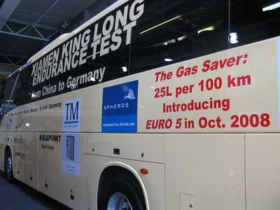 大金龍橫穿歐亞6國,成為漢諾威IAA國際商用車展覽會上絕無僅有的經(jīng)過商品化的、長距離的、長時間的行車考驗的參展車型,也成為漢諾威IAA國際商用車展上的一大亮點。