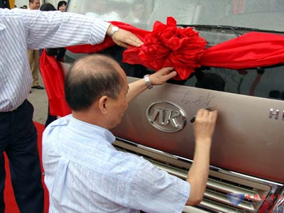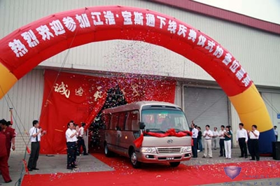 九月,已是金秋,是個(gè)收獲的季節(jié),美麗的瘦西湖畔氣球高懸、彩旗飄揚(yáng),25日上午,在安徽江淮客車有限公司江都事業(yè)部廠區(qū)內(nèi),憑借近50年的客車制造經(jīng)驗(yàn)、經(jīng)歷了現(xiàn)代客車技術(shù)的引進(jìn)、消化、吸收與創(chuàng)新,協(xié)同底盤、發(fā)動(dòng)機(jī)、客車等內(nèi)部?jī)?yōu)勢(shì)資源,潛心研發(fā)而成的江淮寶斯通成功下線,這是凝聚了全體江淮人智慧的不懈努力的成果,是一個(gè)值得驕傲與紀(jì)念的歷史時(shí)刻。安徽江淮汽車集團(tuán)董事長(zhǎng)左延安、總裁安進(jìn)、江都市市長(zhǎng)丁一、江淮汽車集團(tuán)執(zhí)行層、江淮客車有限公司執(zhí)行層、行業(yè)主流媒體以及來自各配套企業(yè)的領(lǐng)導(dǎo)、相關(guān)旅游、團(tuán)體行業(yè)領(lǐng)導(dǎo)出席了此次盛會(huì)。