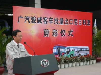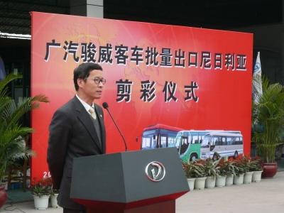 據(jù)介紹,本批出口尼日利亞的30臺客車是廣汽駿威產(chǎn)品首次挺進非洲市場,在公司歷史和廣州汽車自主品牌發(fā)展史上具有里程碑的重要意義。在慶賀儀式上,廣汽駿威公司領(lǐng)導(dǎo)難掩興奮之情,廣汽集團副總經(jīng)理、廣汽駿威董事長蔣平先生發(fā)表講話,贊揚了廣汽駿威在各項生產(chǎn)經(jīng)營管理上所取得的長足發(fā)展,充分肯定了廣汽駿威在開拓海外市場上所做的努力,勉勵廣汽駿威在良好的銷售勢頭上再接再厲,對今年完成各項經(jīng)濟指標(biāo)再創(chuàng)佳績充滿信心。公司總經(jīng)理鄧濤表示,廣汽駿威客車充分利用產(chǎn)品優(yōu)勢,積極拓展海外市場,07年出口量和出口額均有了較大突破。2008年,廣汽駿威繼往開來,將在繼續(xù)深耕細(xì)作東南亞市場的基礎(chǔ)上,加大市場開發(fā)力度,積極拓展其他國家和地區(qū)市場,尤其是非洲地區(qū)。