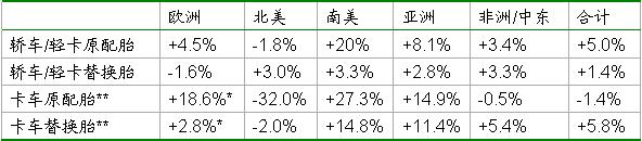 在經(jīng)歷了若干年的平穩(wěn)增長之后,2007年的轎車/輕卡輪胎的銷量令人非常滿意;在替換胎領(lǐng)域中,所有的市場都實(shí)現(xiàn)了顯著的增長;非洲和中東地區(qū)的銷售業(yè)績尤其出色。由于市場情況有利,卡車輪胎的銷量實(shí)現(xiàn)了大幅度增長;集團(tuán)已經(jīng)計(jì)入了北美地區(qū)業(yè)務(wù)急遽下滑后的財(cái)務(wù)數(shù)字。所有細(xì)分市場上的特種輪胎銷量都實(shí)現(xiàn)了強(qiáng)勁的增長。
