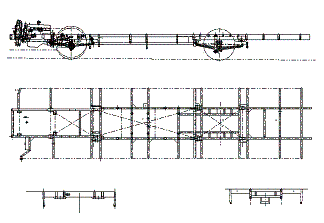 該車采用中段桁架式底盤設(shè)計(jì),在提高底架結(jié)構(gòu)強(qiáng)度的同時(shí)維持了結(jié)構(gòu)的輕量化,充分滿足了CNG氣瓶布置的要求;底盤上各種管路線束走向更加合理,便于保養(yǎng)維修;桁架梁的鳥籠結(jié)構(gòu)為底盤各附件,特別是CNG管道提供了充分的保護(hù)。