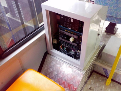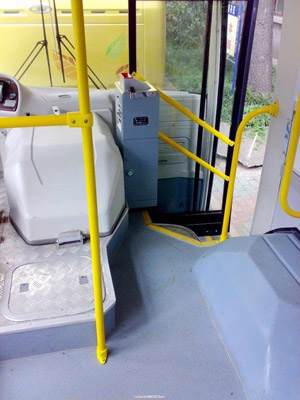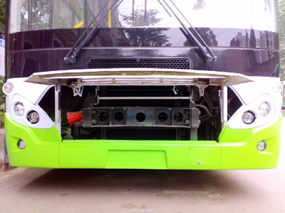 另外該車發(fā)動(dòng)機(jī)大幅前移并下沉,極大的加寬了前輪處過道寬度(達(dá)495mm,遠(yuǎn)大于國(guó)標(biāo)要求的450mm),極大的方便乘客的上下、提高了乘客的通過性,并使駕駛員的工作空間更加開闊,滿足了城市快速公交的需要;發(fā)動(dòng)機(jī)前移下沉使得迎面氣流更加順暢的通過散熱器,提高了散熱效率,并減少熱氣流進(jìn)入車內(nèi)。
