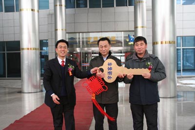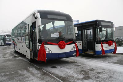 2008年2月25日上午九點(diǎn),宇通大廈一樓廣場(chǎng)前彩旗飄飄,熱鬧紛繁,北京民航通力航空服務(wù)公司、北京空港開(kāi)遠(yuǎn)客運(yùn)有限公司交車儀式暨北京民航首都機(jī)場(chǎng)三號(hào)航站樓奧運(yùn)專用車下線儀式在這里隆重舉行。此次交付使用的車輛包括27輛專門為機(jī)場(chǎng)旅客運(yùn)輸開(kāi)發(fā)的機(jī)場(chǎng)專用巴士ZK6126HA和8輛ZK6107H,以及16輛具有世界領(lǐng)先技術(shù)的超級(jí)單胎機(jī)場(chǎng)擺渡車ZK6128HGD。北京民航通力航空服務(wù)公司總經(jīng)理李慶民、北京空港開(kāi)遠(yuǎn)客運(yùn)有限公司總經(jīng)理史俊民、鄭州宇通客車股份有限公司副總經(jīng)理王文兵及宇通公司有關(guān)人員出席了交車儀式,王文兵副總經(jīng)理將具有象征意義的金鑰匙交到了李慶民和史俊民兩位總經(jīng)理的手中,交車儀式在禮花飛舞中圓滿結(jié)束,這也標(biāo)志著宇通客車正式批量進(jìn)入首都機(jī)場(chǎng),為機(jī)場(chǎng)工作人員和過(guò)港旅客提供客運(yùn)服務(wù)。