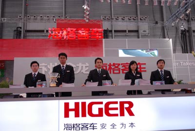 走進(jìn)海格客車(chē)展區(qū),一種簡(jiǎn)約、大氣的感覺(jué)撲面而來(lái)。淡雅的灰色主色調(diào),參觀洽談區(qū)潔白的座椅,精致醒目的海格LOGO小旗……展臺(tái)的布置給人一種置身歐美國(guó)際車(chē)展的感覺(jué)。該企業(yè)品牌管理部主任王新亮對(duì)本報(bào)記者說(shuō):“我們不想靠‘花里胡哨的噱頭’吸引觀眾眼球,取而代之的是專業(yè)的現(xiàn)場(chǎng)講解和熱情周到的服務(wù)。希望現(xiàn)場(chǎng)的觀眾能夠在與我們工作人員的接觸中,感受海格對(duì)客戶的關(guān)愛(ài)之情,了解海格產(chǎn)品的過(guò)硬之處,讓他們發(fā)自內(nèi)心地為海格加分!