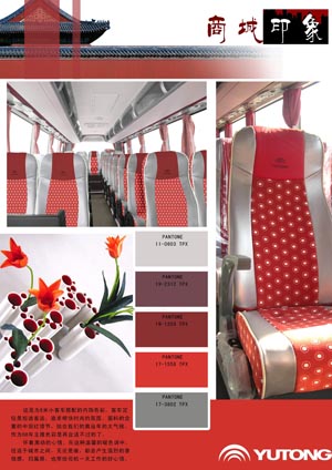 根據(jù)評審標(biāo)準(zhǔn)總則和各類別獎項(xiàng)標(biāo)準(zhǔn),由知名色彩專家和學(xué)者組成的評審委員會對參賽作品進(jìn)行了公正、公開、公平的評審。宇通公司產(chǎn)品開發(fā)處造型室選送的內(nèi)飾色彩搭配作品——印象系列,贏得了專家的一致好評,榮獲“色彩中國”年度色彩應(yīng)用大獎。此次的參賽作品是宇通公司2007年下半年針對幾個車型內(nèi)飾色彩做的大膽嘗試,車型包括:ZK6147HA-2,ZK6930H,ZK6799H,公交ZK6852HG等,其用色大膽,既和諧統(tǒng)一又具有中國特色,細(xì)節(jié)都做到完美、時尚。
