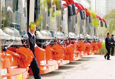 “真漂亮!”4月18日9時,20臺紅白相襯的嶄新豪華客車亮相市政府廣場后,迎來圍觀的市民盛贊。“車內(nèi)的各種設(shè)施都是量身訂制的!”遼寧城際客運(yùn)有限公司總經(jīng)理隋波介紹,與公交車采用硬塑的坐椅不同,新車采用舒適的軟坐椅。同時為方便攜帶行李的乘客乘坐,車內(nèi)還設(shè)有固定的行李架。此外,車輛設(shè)置為低踏板,可方便乘客上下車,車內(nèi)還配有電視機(jī)、飲水機(jī)等設(shè)施。車輛長12米,共有座位43個。