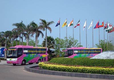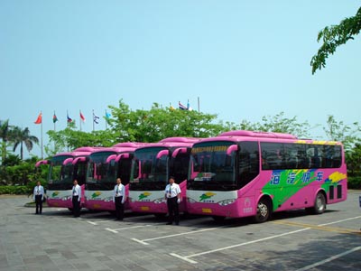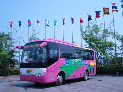 每年的博鰲亞洲論壇年會(huì),不僅是亞太地區(qū)領(lǐng)導(dǎo)人和企業(yè)家的盛會(huì),各汽車(chē)廠商也紛紛競(jìng)標(biāo)向年會(huì)提供服務(wù)車(chē)輛,美麗的博鰲頓時(shí)靚車(chē)云集!皷|風(fēng)金蓮花”客車(chē)采用歐洲客車(chē)的最新風(fēng)格,卡通式的前臉與豐滿(mǎn)的線條和諧統(tǒng)一,美觀大方,不僅具有歐洲客車(chē)的豪華現(xiàn)代感,而且車(chē)內(nèi)細(xì)心的、人性化設(shè)計(jì)使得乘坐舒適性大大提高。造型流暢、安全可靠、售后服務(wù)保障完善贏得了海南海汽公司的高度認(rèn)可,并一次批量購(gòu)買(mǎi)了東風(fēng)金蓮花作為客運(yùn)車(chē)輛。此前, 13輛“東風(fēng)蓮花”客車(chē)成為海南旅游專(zhuān)用車(chē),用于三亞到港門(mén)的旅游專(zhuān)線上。