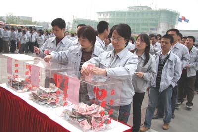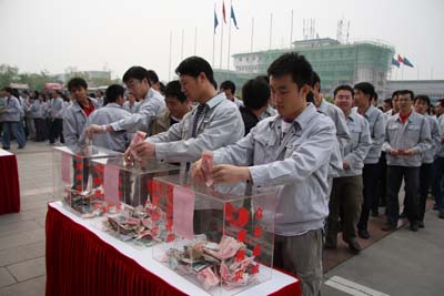 汶川地震發(fā)生后,災(zāi)區(qū)的被困的人民急需救助、救出的傷員急需醫(yī)藥、通訊中斷、供水、供電、道路交通受嚴(yán)重影響……災(zāi)情時刻牽動著福田員工的心,員工們紛紛表示要為災(zāi)區(qū)捐款,為災(zāi)區(qū)人民盡一份綿薄之力。福田汽車黨委應(yīng)員工要求組織了此次捐款活動,活動中,廣大員工紛紛解囊,向?yàn)?zāi)區(qū)人民奉獻(xiàn)自己的一份愛心。