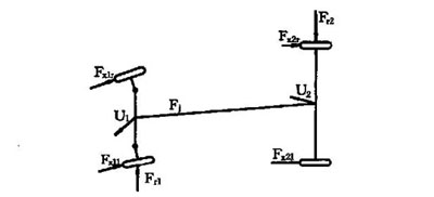 (4) 主銷后傾角過大。制動(dòng)跑偏時(shí)的受力如圖1 所示: 由于主銷后傾角大, Fr1 對(duì)轉(zhuǎn)向輪產(chǎn)生的偏轉(zhuǎn)