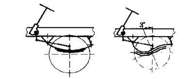 現(xiàn)在, 鋼板彈簧懸架在客車上的應(yīng)用仍很廣。通力矩會(huì)較大, 當(dāng)轉(zhuǎn)向輪受到外界影響時(shí)會(huì)引起振動(dòng);常的板簧懸架自身既是彈性元件又是導(dǎo)向元件, 因此, 在汽車板簧懸架設(shè)計(jì)中進(jìn)行運(yùn)動(dòng)學(xué)的設(shè)計(jì)計(jì)算是不可忽視的。由于客車的前懸一般都較長(zhǎng), 這項(xiàng)工作在客車的設(shè)計(jì)中顯得更為重要。前板簧與轉(zhuǎn)向桿系的運(yùn)動(dòng)學(xué)關(guān)系不當(dāng)或兩個(gè)轉(zhuǎn)向輪的制動(dòng)力不相等是導(dǎo)致前輪擺振和制動(dòng)跑偏的主要原因之一(前輪定位和板簧懸架的剛度偏低也是造成前輪擺振和制動(dòng)跑偏的原因)。這不但會(huì)導(dǎo)致客車在不平路面上轉(zhuǎn)向盤受到?jīng)_擊, 而且會(huì)破壞客車的轉(zhuǎn)向特性(干涉轉(zhuǎn)向)。在總布置設(shè)計(jì)時(shí), 如果忽略板簧制動(dòng)力矩引起的扭曲運(yùn)動(dòng), 往往會(huì)引起制動(dòng)時(shí)自動(dòng)轉(zhuǎn)向(擺振), 車速高時(shí)甚至?xí)l(fā)客車甩尾, 造成交通事故。