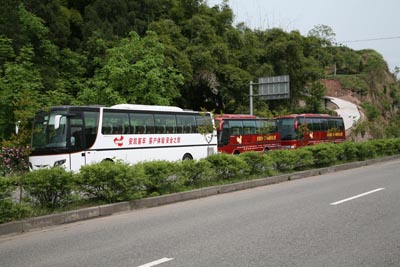 據(jù)了解,此次參加安凱客車西部巡展的車隊由尊榮400、HFF6125WK79(下沉式臥鋪)、HFF6890KZ-8三輛車組成。4月20日,他們從重慶出發(fā),一路北上,抵達陜南、穿越秦嶺。面對秦嶺山路多,彎道急、坡度陡的路況和連日陰雨的濕滑路面,安凱客車顯示了其卓越的操控性能和安全性能,三輛車魚貫上坡、下坡、進洞、出洞,沒有一起險情出現(xiàn)。其中,在崎嶇的山路上最值得一提的是車隊領頭羊尊榮400前端先進的遠紅外線夜視儀,在雨天云霧繚繞的山路上它適時監(jiān)控前方路況,為車隊順利穿行于崇山峻嶺之中提供了有力的技術保證。車隊順利穿過安康、漢中、寶雞,抵達西安。