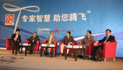 在啟動(dòng)儀式上,中國(guó)公路學(xué)會(huì)客車(chē)分會(huì)理事長(zhǎng)鄒虎嘯、北京祥龍資產(chǎn)經(jīng)營(yíng)有限公司副總裁喬梁、廈門(mén)金龍聯(lián)合汽車(chē)工業(yè)有限公司副總經(jīng)理徐向東、廈門(mén)金龍聯(lián)合汽車(chē)工業(yè)有限公司副總工程師周方明等,就汽車(chē)節(jié)能減排問(wèn)題展開(kāi)對(duì)話。