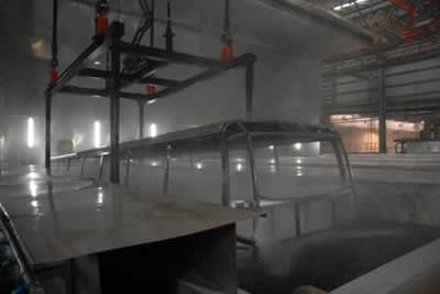 在國內(nèi),除了金旅的整車電泳外,也有一些企業(yè)也進(jìn)行了這方面涂裝工藝的嘗試。但相比金旅包括全部車身骨架、蒙皮和底盤車架的整車電泳,這些企業(yè)更多的是對整車中的車架部分進(jìn)行電泳處理,而對車身骨架,蒙皮、行李艙等仍采用傳統(tǒng)工藝噴涂防銹底漆。如此的區(qū)別在于,可以減小電泳槽的體積,節(jié)約建設(shè)成本,技術(shù)工藝也相對簡單。但效果是:雖然車架部分的防腐能力得到了提高,但車身的防腐能力并沒有得到提高。而車身在整車中相對于底盤車架更容易出現(xiàn)早期腐蝕現(xiàn)象,尤其是骨架和焊縫銹蝕。因此僅僅對車架電泳,還不能解決車身在實(shí)際營運(yùn)中出現(xiàn)早期銹蝕的問題。