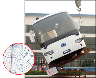 在汽車的安全性能越來越受到人們普遍重視的今天,側翻實驗數(shù)據(jù)成為判定客車安全等級的重要指標。一向注重客車“安全性能”的百路佳客車,于2008年6月20日再次成功完成新車型JXK6830的側翻安全試驗,側翻角度為41.5度,大大高于國際標準(35℃)。