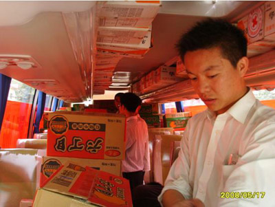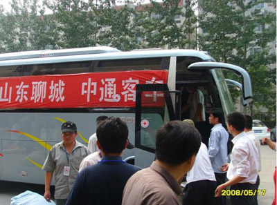 2008年5月17日上午兩輛載滿了中通客車全體員工深深祝福,滿載著災(zāi)區(qū)急需的食品和衣物的客車緩緩地駛出公司廠門口,浩浩蕩蕩的向災(zāi)區(qū)進(jìn)發(fā)。