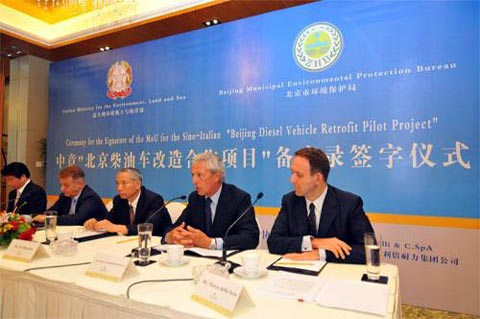 2008年7月10日- 北京市與意大利環(huán)境領(lǐng)土與海洋部簽署了一項合作備忘錄,由意大利環(huán)境部提供資金支持在北京開展試點項目,測試由倍耐力生態(tài)技術(shù)公司提供的柴油車顆粒物捕集器系統(tǒng)技術(shù)的適應(yīng)性,該技術(shù)能夠大幅度地降低在用柴油車的微粒排放,已經(jīng)在意大利及歐洲各城市的公共運輸車以及公共汽車上得到應(yīng)用,并通過權(quán)威機構(gòu)的認(rèn)證。