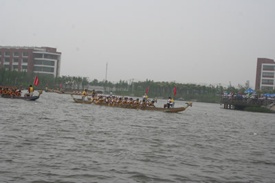雖然此前上海天氣連續(xù)多日大雨,但在比賽開始前天空卻揚起了笑臉,露出了久違的陽光,為比賽的順利進行提供了有利的天氣條件。隨著發(fā)號員的一聲令下,比賽正式開始,只聽見鞭炮炸響,鼓聲雷鳴,兩岸觀戰(zhàn)師生發(fā)出陣陣吶喊,為各自支持的參數(shù)隊伍加油鼓勁……經(jīng)過激烈角逐,同濟大學、上海財經(jīng)大學從18只參賽隊伍中脫穎而出獲得了本次比賽的一等獎。