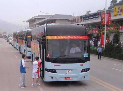 為安全圓滿地完成此次圣火在陜境內(nèi)的傳遞,陜西省政府和奧組委積極準(zhǔn)備,周密的安排圣火傳遞的路線和警力的部屬,對(duì)參與傳遞和接待的的車輛進(jìn)行了嚴(yán)格的檢查和選用,并在火炬?zhèn)鬟f前曾進(jìn)行過“火炬?zhèn)鬟f演習(xí)”。對(duì)VOLVO客車在演習(xí)中的表現(xiàn)給予了高度的評(píng)價(jià)。最終確定為此次圣火在陜傳遞運(yùn)輸火炬手和政府官員的專用車。其中VOLVO9800的豪華和安全性給奧組委成員留下了深刻的印象并對(duì)其大加贊賞,還有意向繼續(xù)租用此車為奧運(yùn)服務(wù)。西沃公司的VOLVO客車產(chǎn)品為能得到政府及奧組委的高度評(píng)價(jià)而倍感榮幸,并且不負(fù)眾望于7月4日?qǐng)A滿完成此次圣火在陜西段的傳遞。