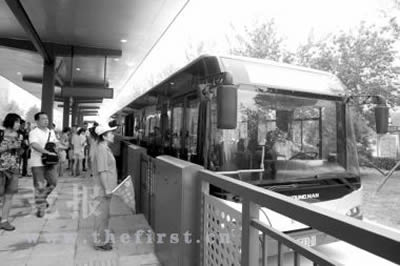 與南中軸快速公交1線不同的是,快速公交2線所有的站臺上都設(shè)置了安全屏蔽門,保障乘客安全。