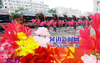 7月30日,延邊東北亞客運(yùn)集團(tuán)“奧運(yùn)服務(wù)車隊(duì)”啟程赴京。