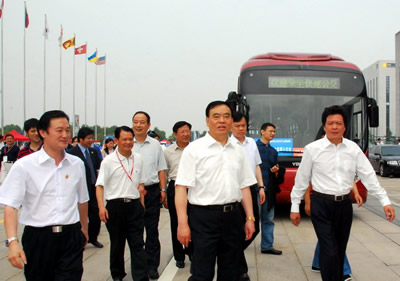 浙江省委書記、省人大常委會(huì)主任趙洪祝,省委副書記、省長(zhǎng)呂祖善等在金華市委副書記、市長(zhǎng)陳昆忠的陪同下分別乘坐“世界第一牛巴”繞場(chǎng)一周。省委書記趙洪祝高興地表示,金華能有這么先進(jìn)的汽車生產(chǎn)企業(yè),這不僅僅是金華的驕傲,也是浙江的驕傲。青年汽車要進(jìn)一步發(fā)揮自身技術(shù)優(yōu)勢(shì),為浙江汽車產(chǎn)業(yè)作貢獻(xiàn)。省長(zhǎng)呂祖善高度評(píng)價(jià)了青年汽車的高技術(shù)含量,他說,這么長(zhǎng)的車轉(zhuǎn)彎這么靈活,這就是高科技。