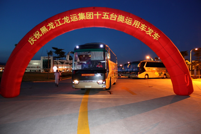 7月4日晚7點左右,大金龍銷售公司發(fā)車組工作人員和來自黑龍江龍運集團的15名駕駛員正在緊張的為15臺“龍威”XMQ6129Y做出發(fā)前的最后檢查,該批車輛將前往哈爾濱趕赴參加7月11日至14日奧運火炬黑龍江省內傳遞,盡管整車下線前已經完成了質檢工作,但工作人員仍不敢馬虎,確保萬無一失。