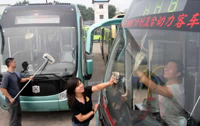 與一般公交車不同,中通新型公交車起步、行車及停車都非常平穩(wěn),這是因為混合動力公交車沒有“離合器”,車輛起步、停車都很平穩(wěn)舒適,并且噪音非常低。新型公交車還設(shè)有防“車身側(cè)傾功能”,行車時遇到坑洼路面,車身也能保持平衡,不會出現(xiàn)側(cè)傾現(xiàn)象,乘客也不會暈車。新車投入部分奧運線路使用,市民可乘綠色環(huán)保的新型公交車去觀看奧運比賽。