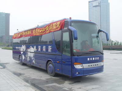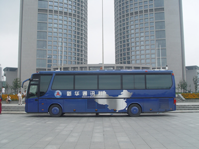 新華社的無線數(shù)字演播車采用安凱尊駕400改裝,采用奔馳.SETRA技術。無線數(shù)字演播車配備了國際首創(chuàng)的車載現(xiàn)場實時高清晰度視音頻全數(shù)字新聞采集和制作(高清非編、三維特技)功能,大幅度提升高清晰度視音頻和圖片等新聞產(chǎn)品實時生產(chǎn)的技術能力。滿足移動訪談、現(xiàn)場報道等多欄目的直播需求,保證和提升了新聞報道原創(chuàng)率、首發(fā)率和落地率。此外,演播車應用了無線數(shù)字傳輸技術,在國內(nèi)亦屬首次,因此將大幅提升我國媒體在實時報道方面與國際同行的競爭力。無線數(shù)字移動演播車在國外亦屬先進設備,而它首次投入應用就恰逢北京奧運會的召開,也是我國在重要體育賽事、新聞事件報道方面的一大突破,推動了我國媒體與國際先進標準的接軌。