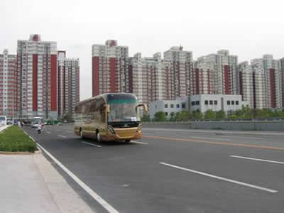 金旅XML6125開拓者豪華客車行駛在奧林匹克射箭場附近
