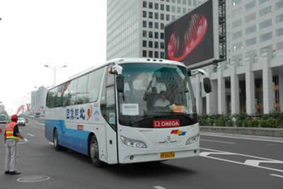 在此次奧運(yùn)服務(wù)用車中, 上海錦江商旅提供了作為其主力車型的21輛廈門金旅XML6108E13豪華客車服務(wù)于各奧運(yùn)專線上。據(jù)了解,該批車輛是廈門金旅公司應(yīng)用最新陰極電泳技術(shù)生產(chǎn)的首批客車,并且全系列車型都采用了前后盤式剎車、全氣囊懸架、最新時尚外觀等多項高端配置,在工藝品質(zhì)及質(zhì)量保障方面都有了大幅度提升,同時這也是金旅公司首批陰極電泳車輛批量服務(wù)奧運(yùn)。