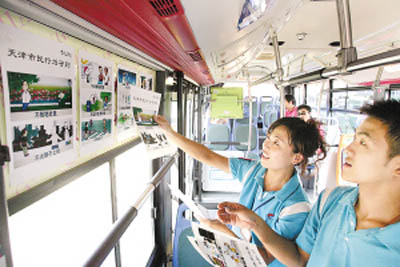 天津公交車廂內(nèi)貼漫畫(huà)宣傳《公約》和《守則》(圖文)