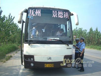 景德鎮(zhèn)市交警支隊(duì)二大隊(duì)中隊(duì)民在查客車(chē)